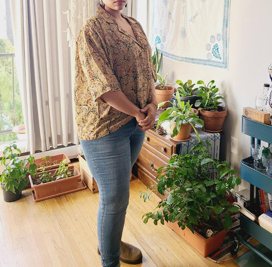 Relaxed fit Crop Shirt short sleeves -Artistic Printed