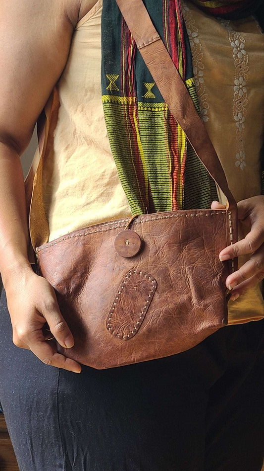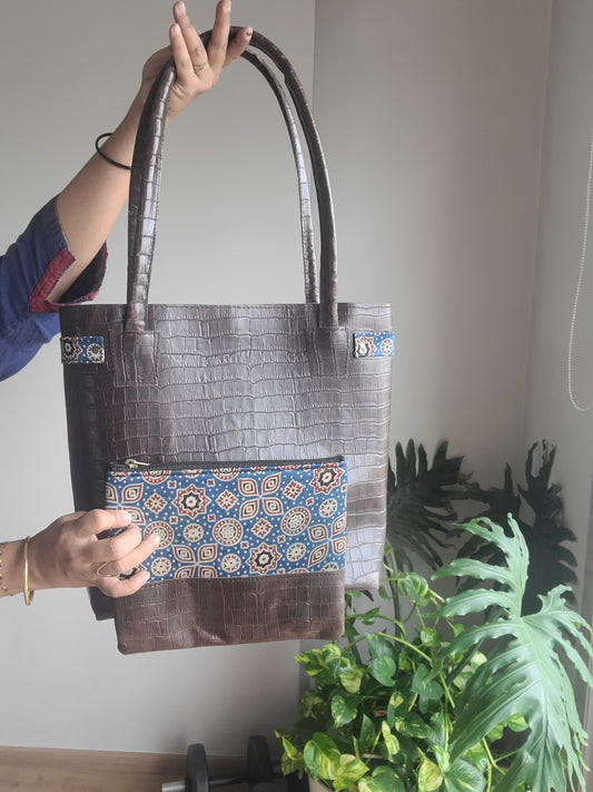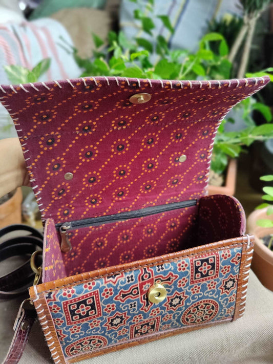 Exquisite Kutch Handmade Leather and Ajrakh Bag - Fusion of Artisan Craftsmanship and Traditional Prints