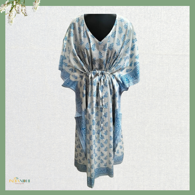 Artisanal Craftsmanship: Each kaftan is handcrafted by skilled artisans, showcasing intricate hand block prints. Embrace the beauty of traditional Indian artistry and let the unique patterns and designs make a fashion statement.