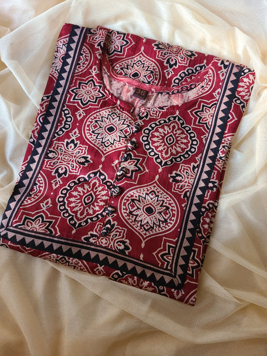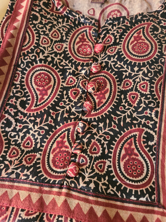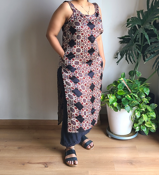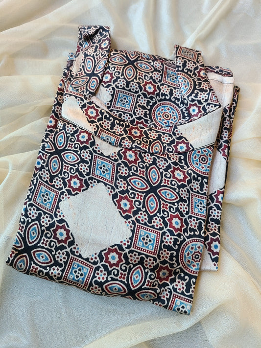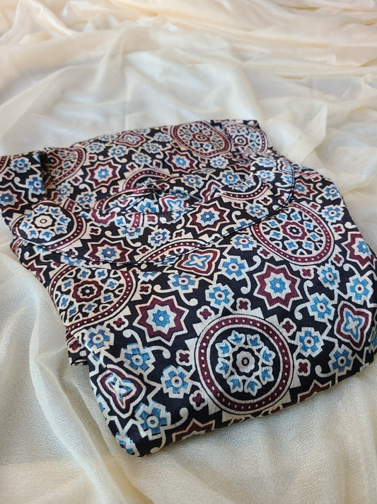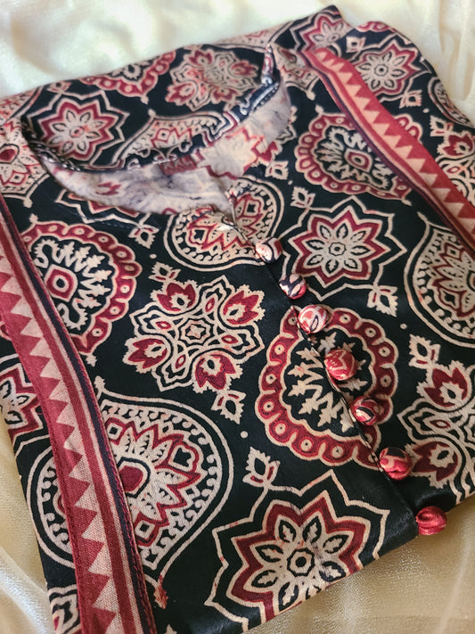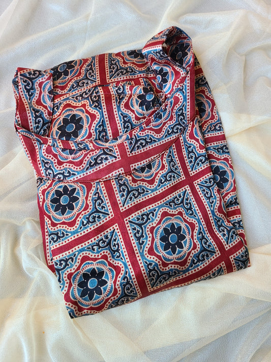Ajrakh Mashru Silk Women's Full lenght Kurti