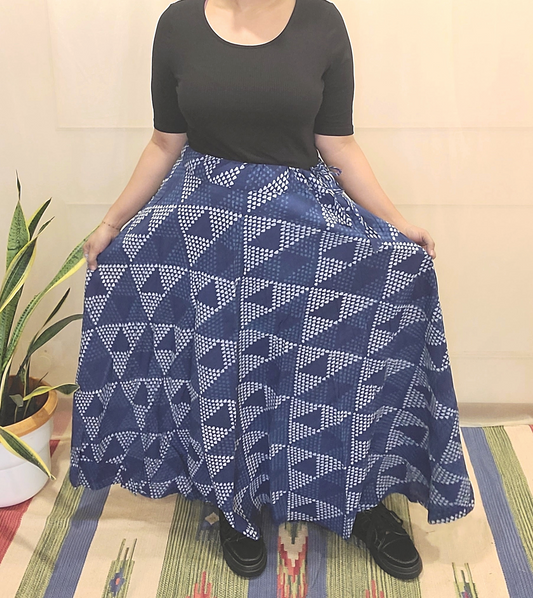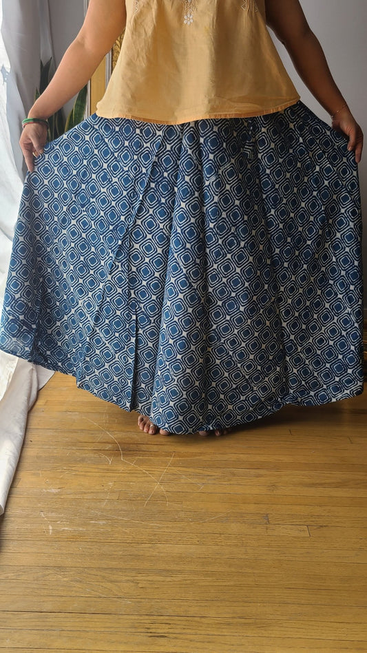 Indigo Hand Block Printed Skirt: Artisanal Elegance for Fashion-forward Women | Shop Now