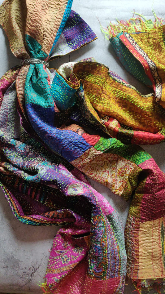 RAMETI- Handmade Silk Kantha Scarf set of 2