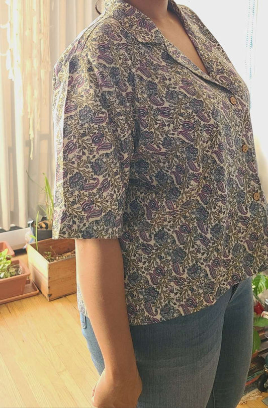 Relaxed fit Crop Shirt ,Short -Artistic printed