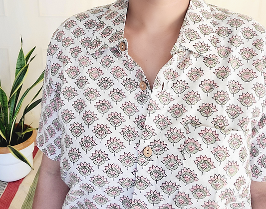 Relaxed fit Crop Shirt short sleeves -Artistic Printed