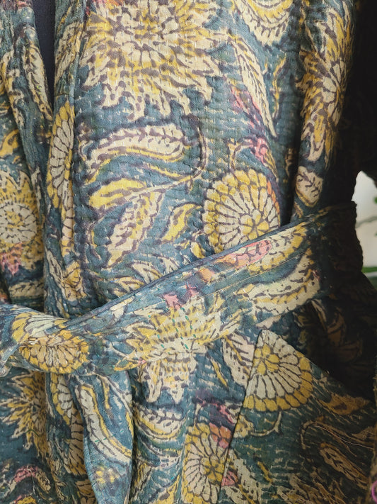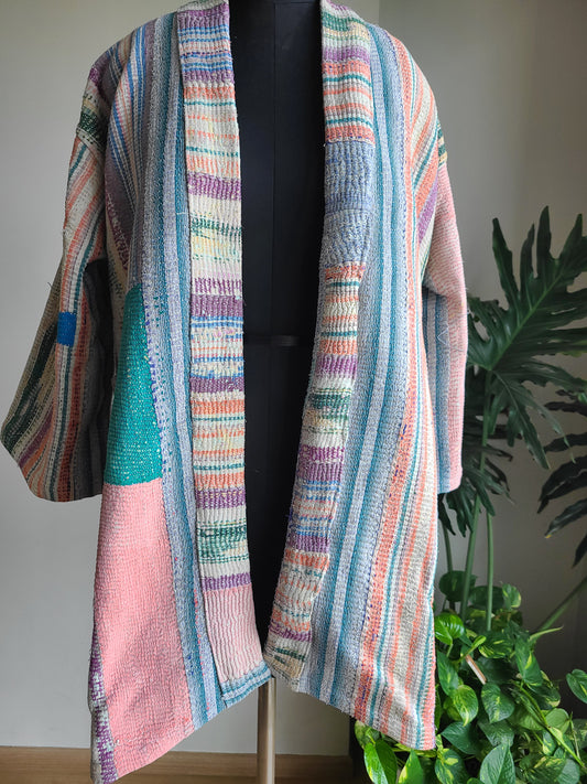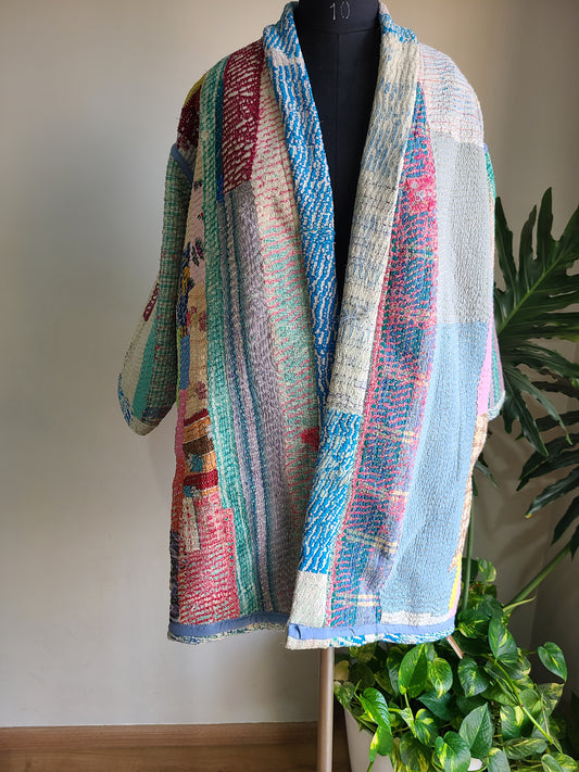 Vintage Reversible Thrift Kantha Jacket: Sustainable Outerwear from Upcycled Recycled Sarees