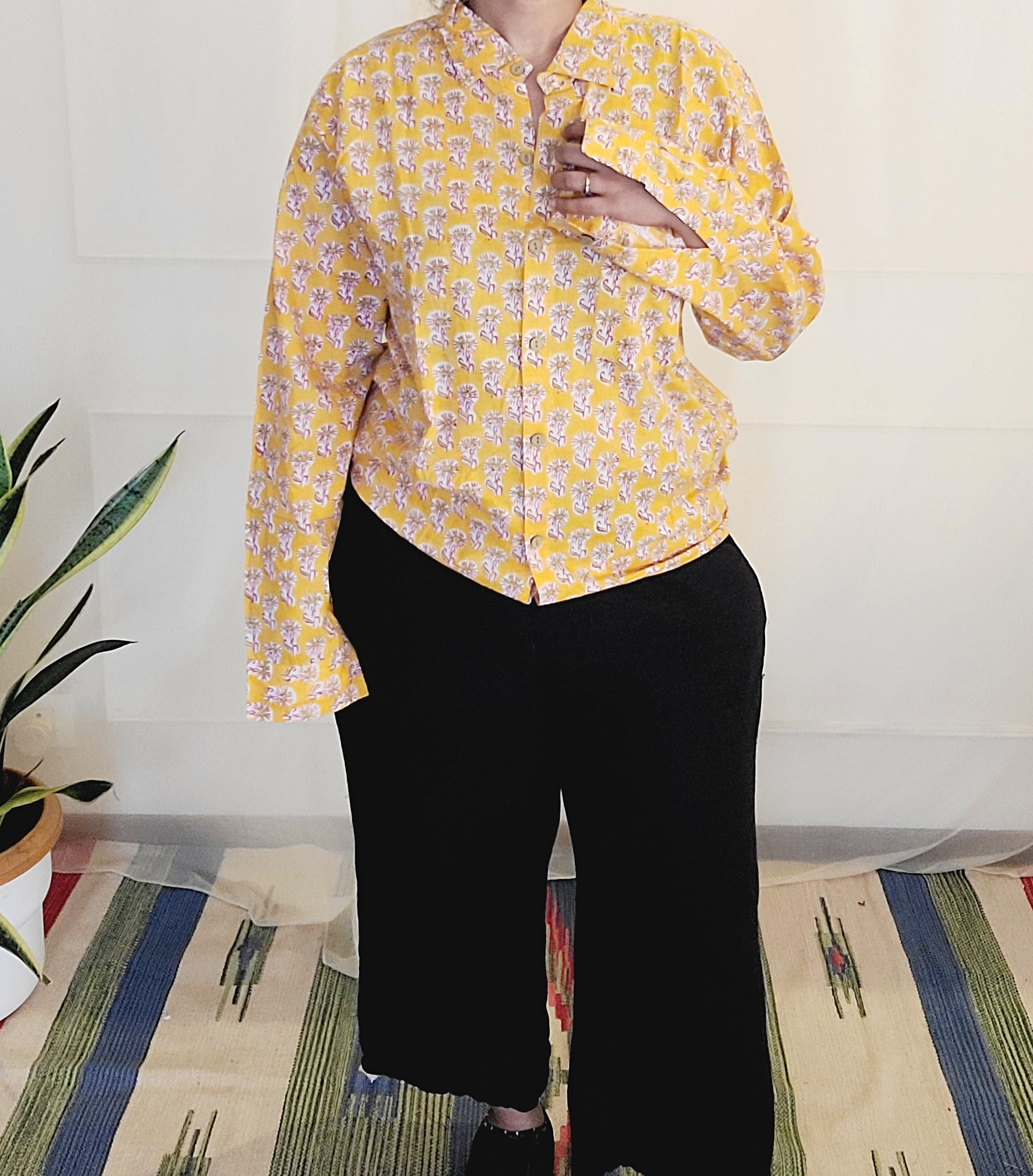 Fabrics: All products are pre-washed. We suggest gentle machine washing in cold water with mild detergent. Bright colors(Plant dyed) should be washed separately for first few washes Do not soak. Do not scrub and wring. Do not bleach. Best way to dry bright, cotton or linen fabrics is line dry in shade or medium tumble dry.