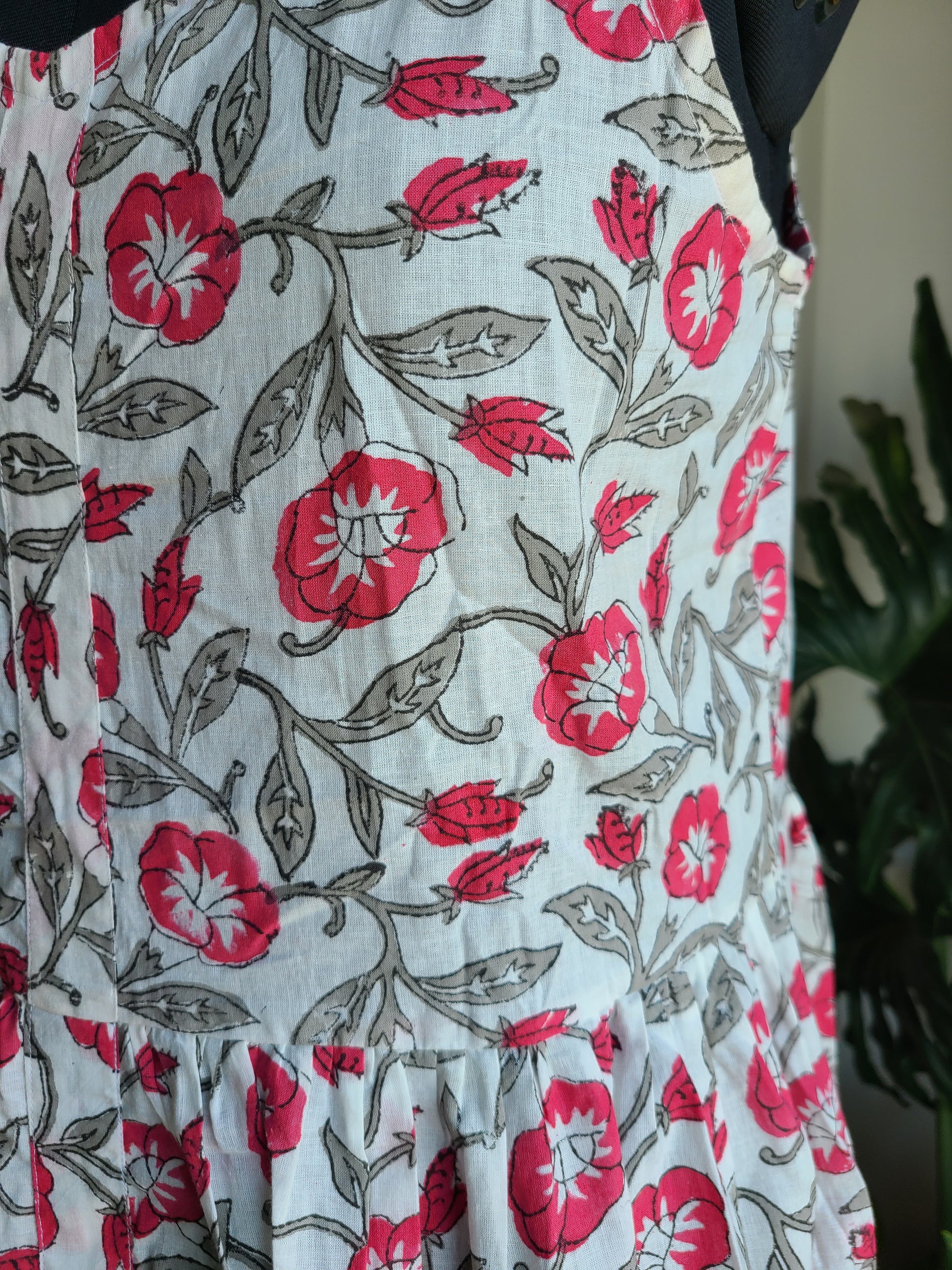 **1. Exquisite Block Prints:** Each dress showcases hand-carved, traditional block prints, ensuring that every piece is unique. The intricate designs and vibrant colors create a captivating look that stands out.
