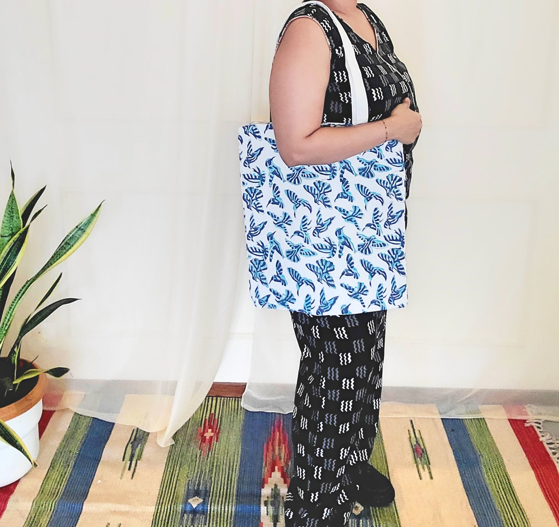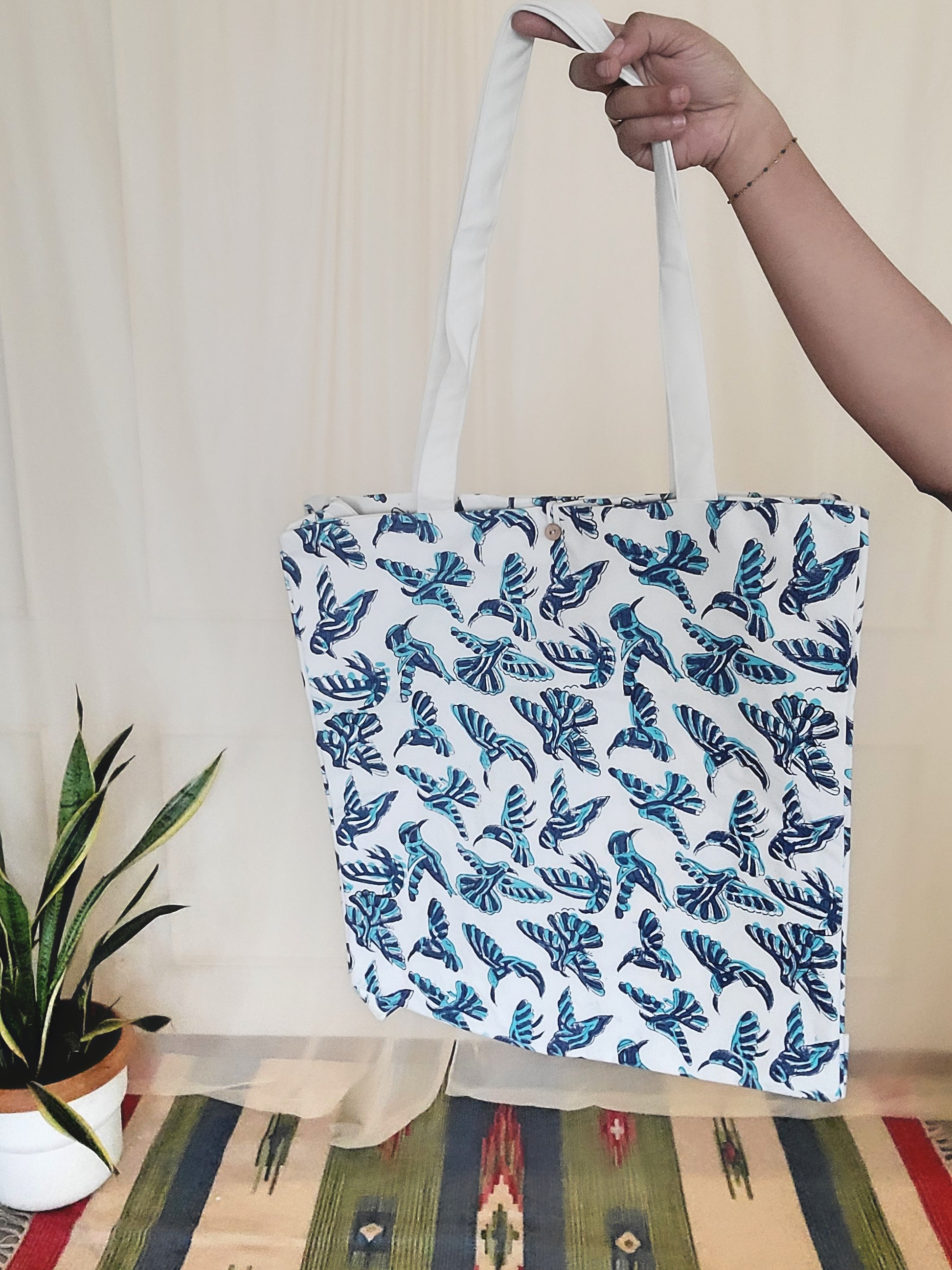 Beautiful College/ work bag made with canvas fabric and intricate and colourful Block prints