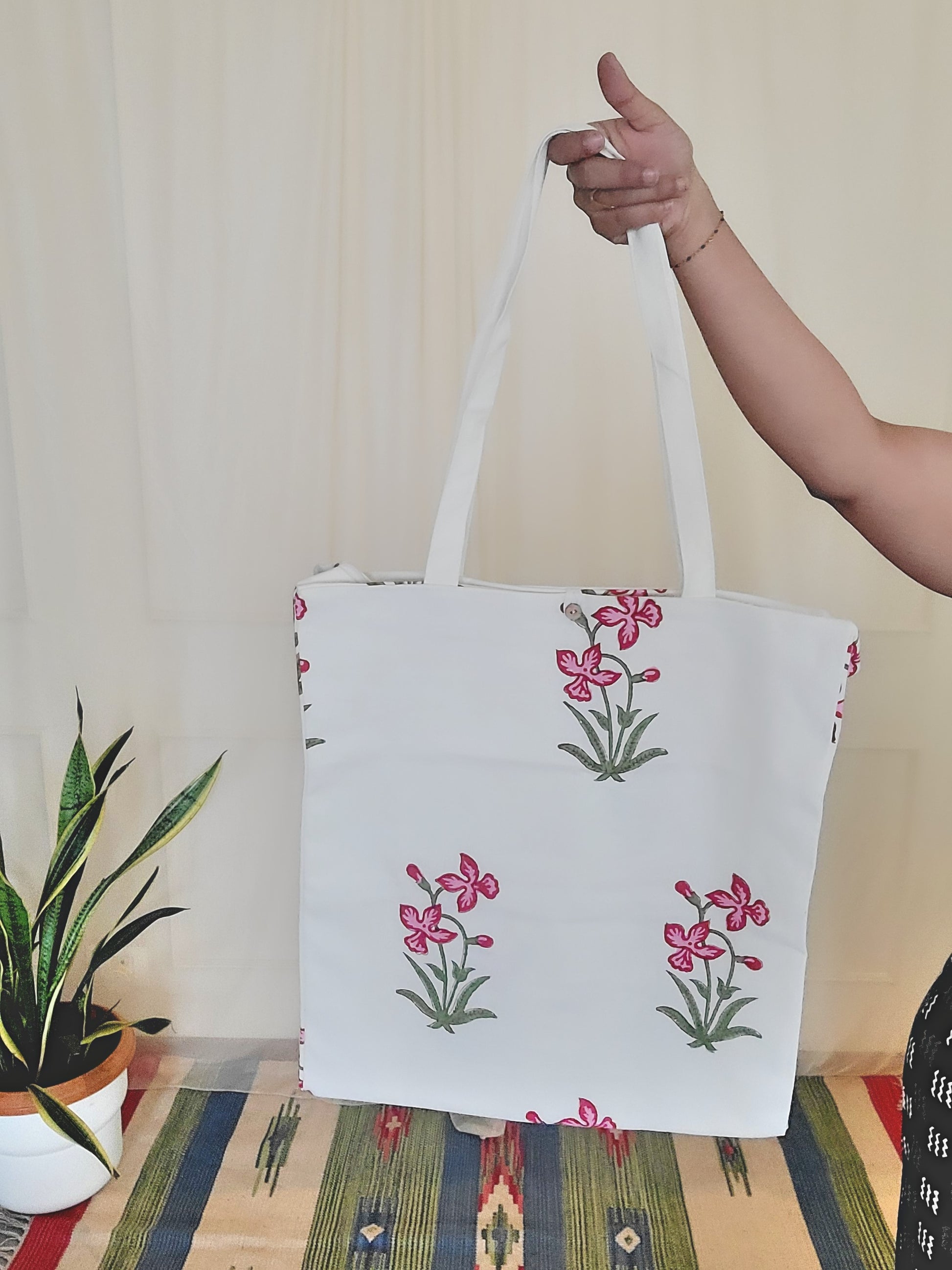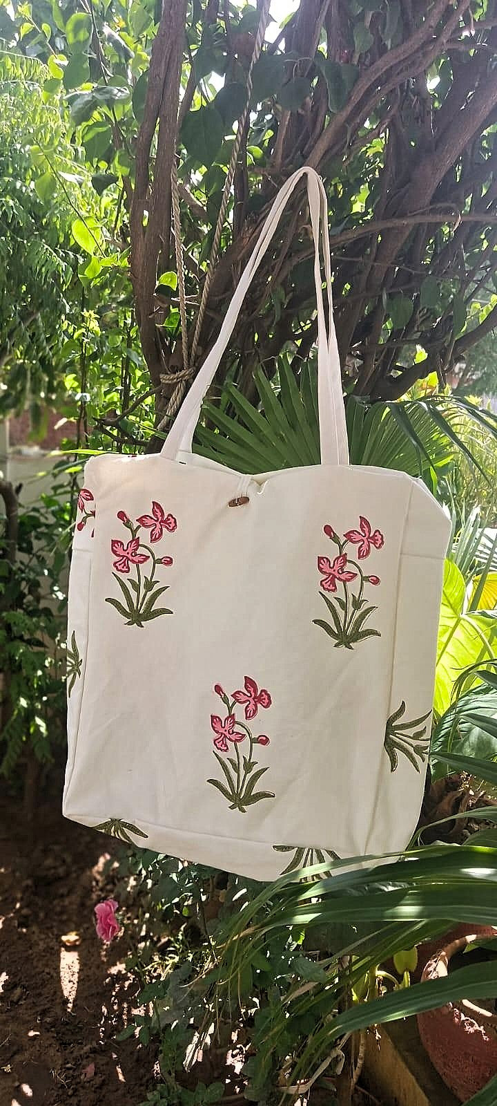 Beautiful College/ work bag made with canvas fabric and intricate and colourful Block prints