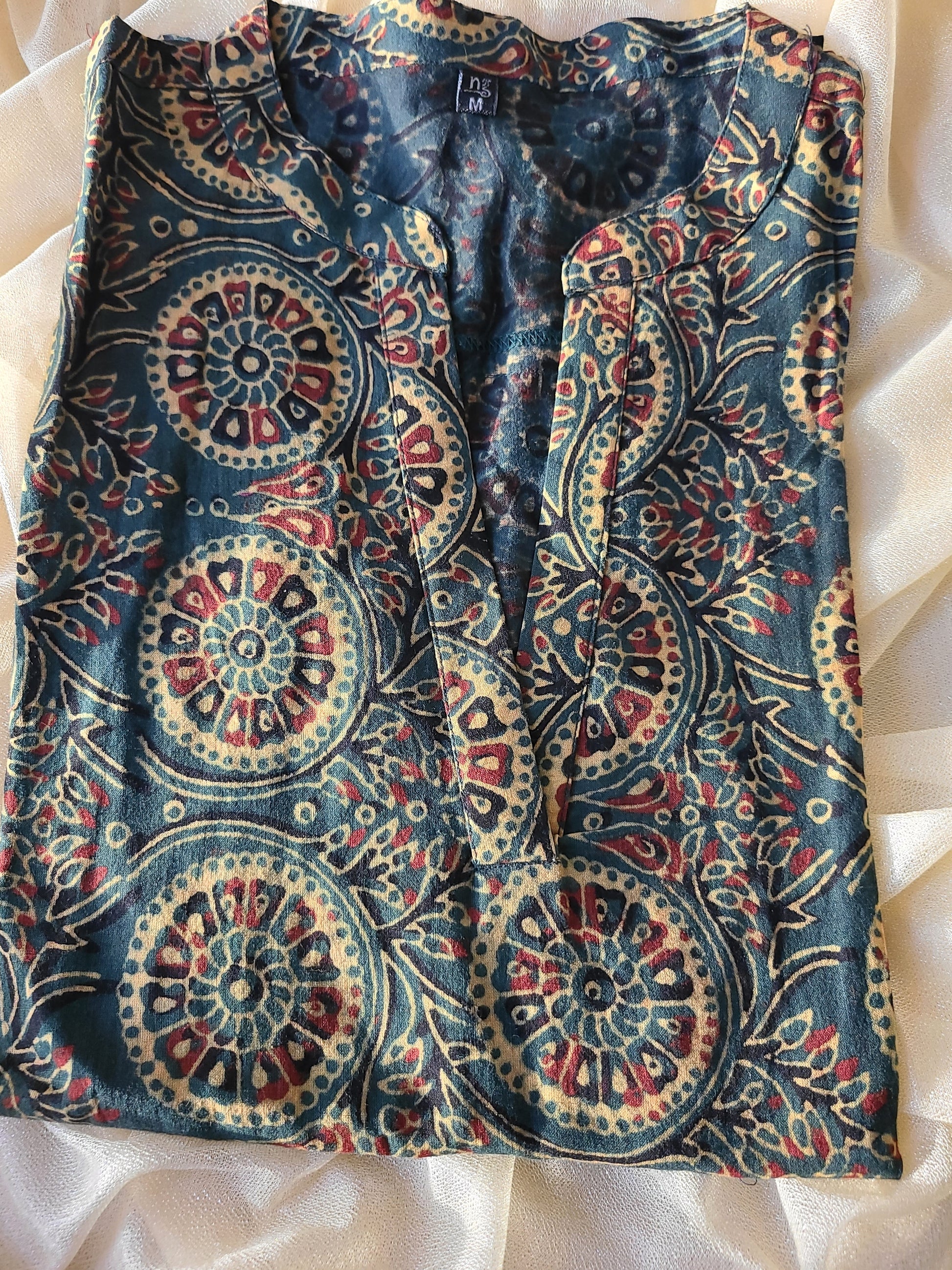 Available in a variety of vibrant colors and contemporary styles, our Ajrak Cotton Casual Tops are perfect for pairing with jeans, skirts, or trousers, creating versatile and chic outfits. Shop online now for the best selection of Ajrak Cotton Casual Tops and elevate your everyday style with ease. Embrace timeless elegance and comfort with our trendy Ajrak Cotton Casual Tops.