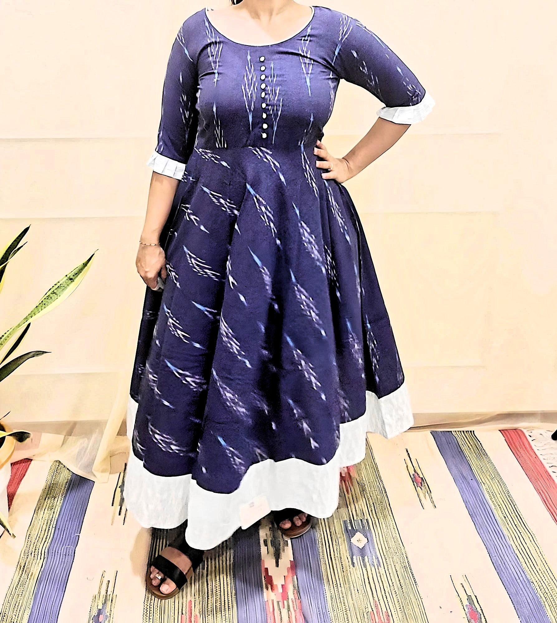 Pure cotton , hand woven Ikkat fabric dress for everyday wear