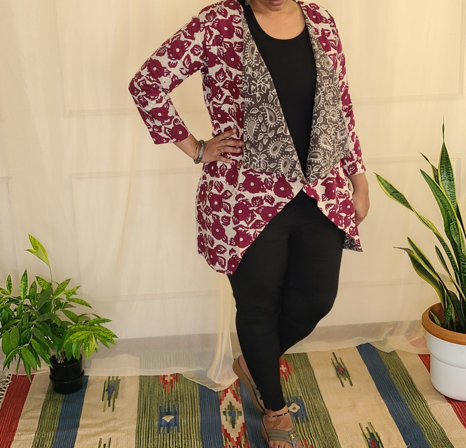 Authentic Bagru, Ajrakh, and Dabu Printed Reversible Cotton Jacket - Exquisite Craftsmanship!