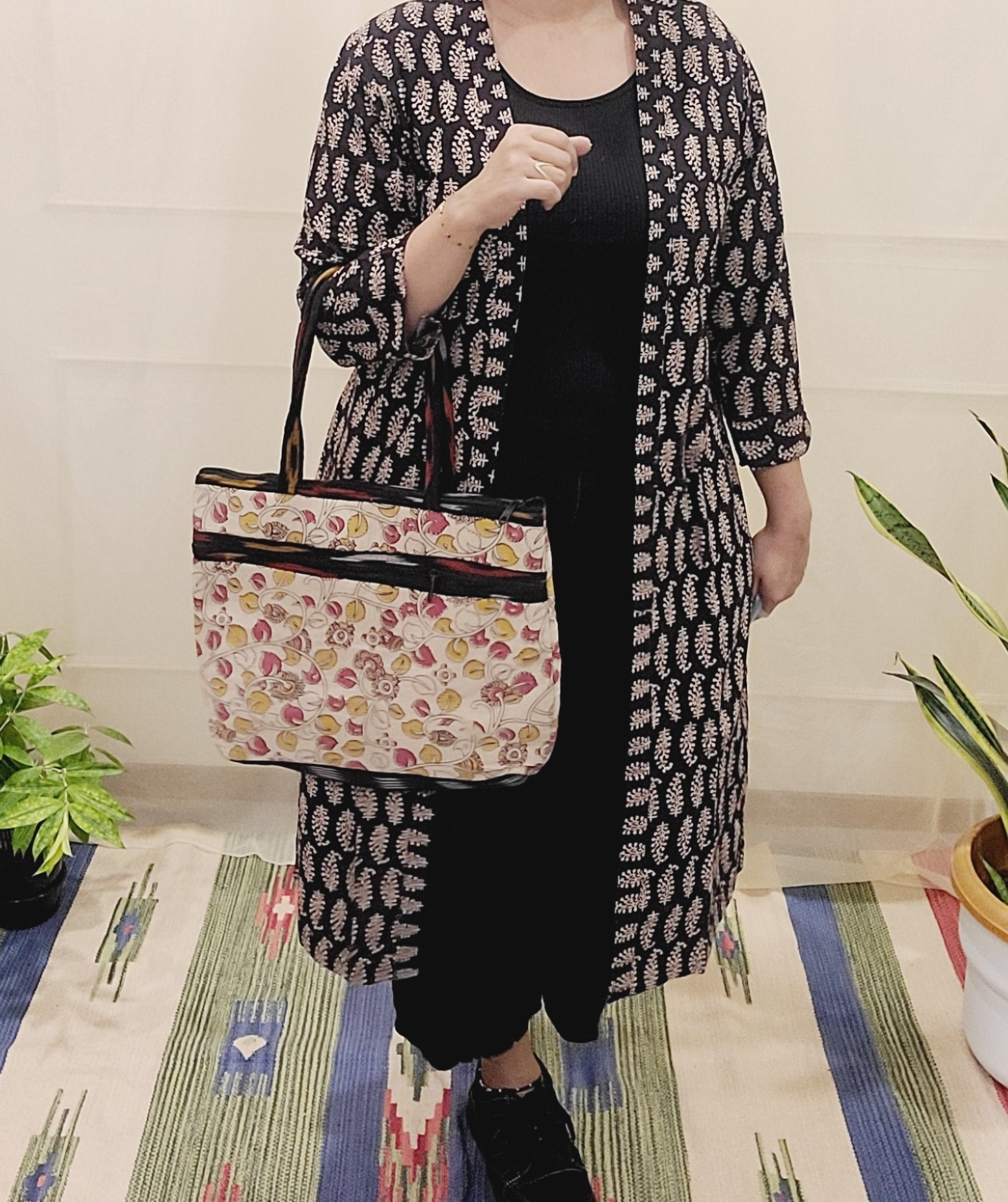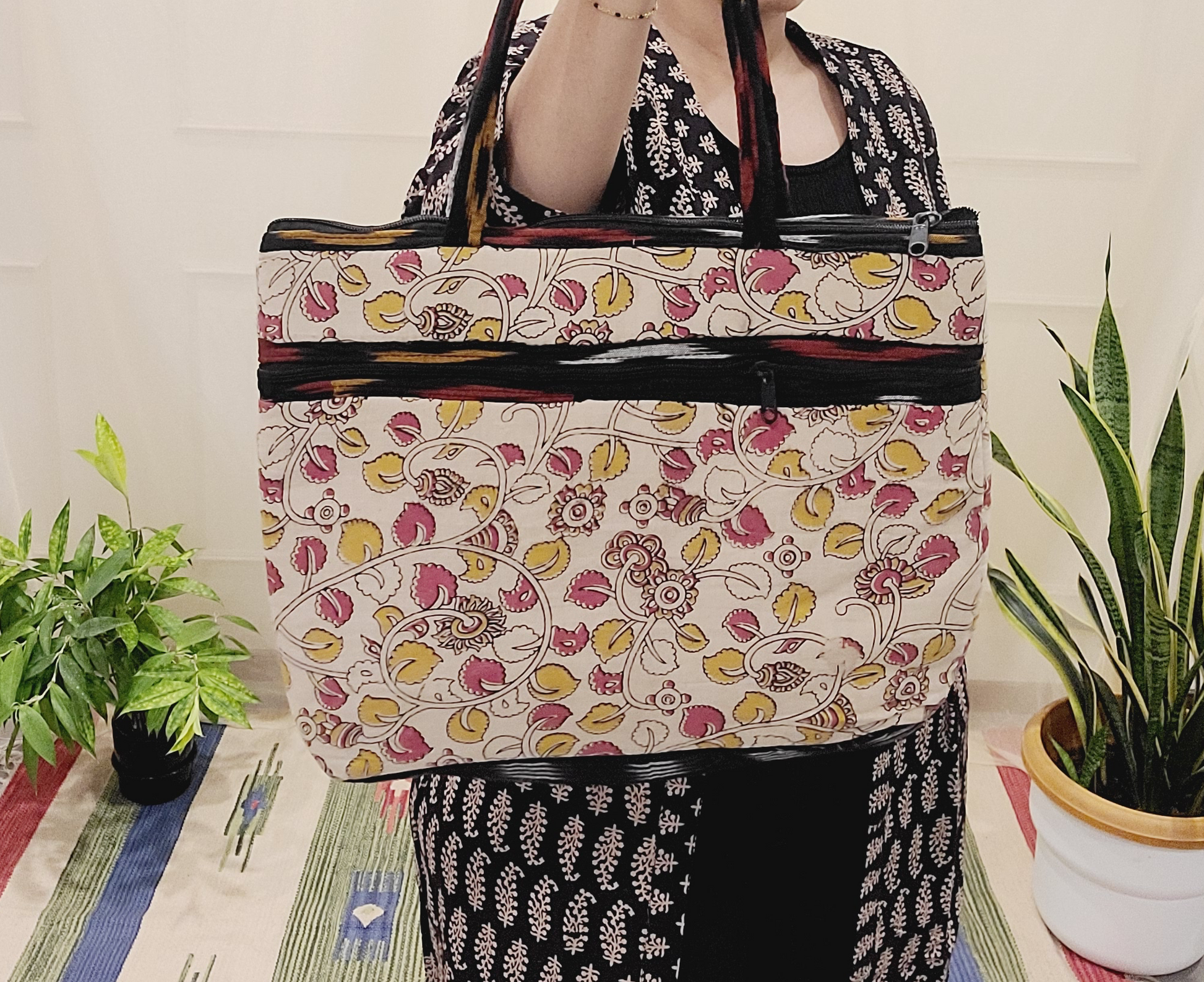 - **Authentic Kalamkari Art**: Each bag features intricate hand-blocked designs using natural dyes, highlighting the beauty of traditional Indian artistry.