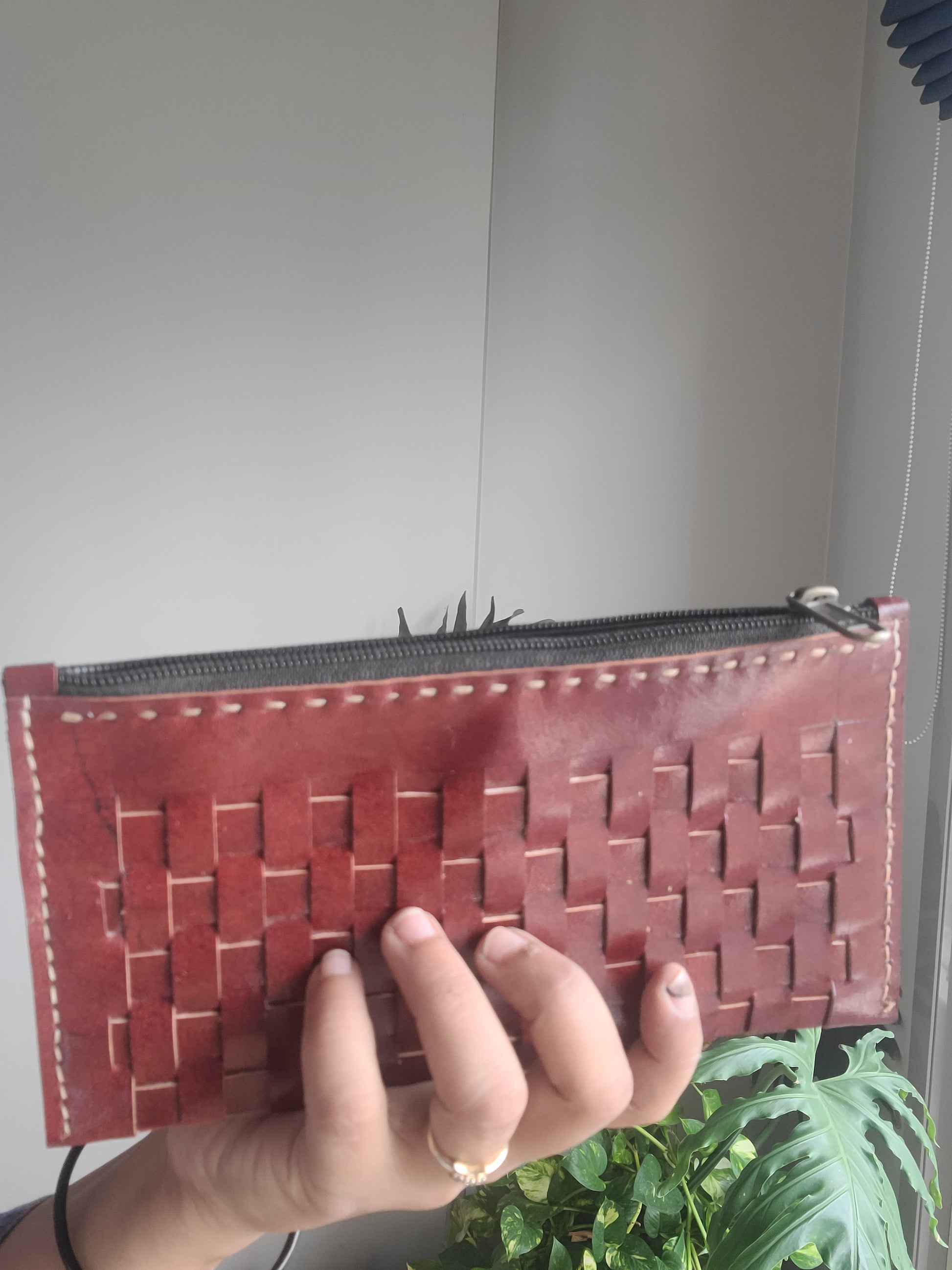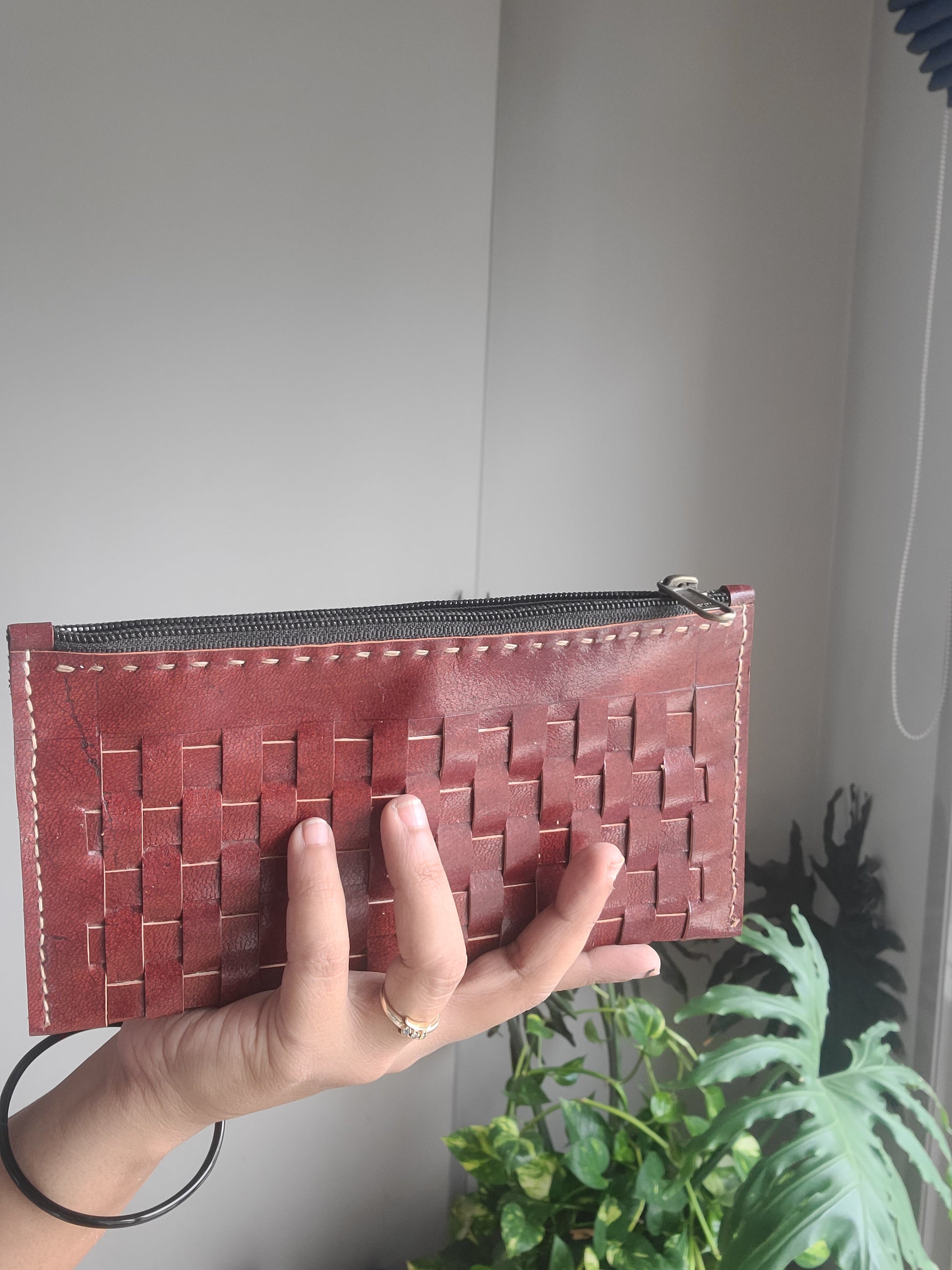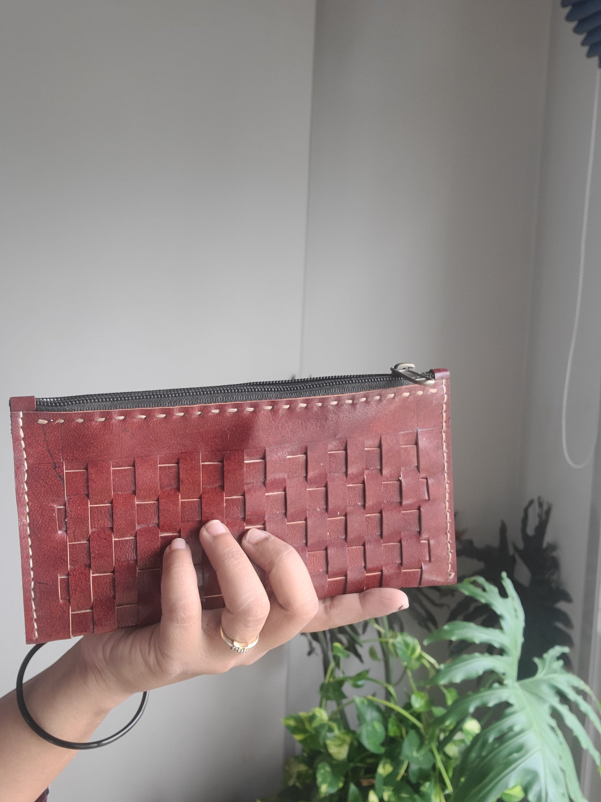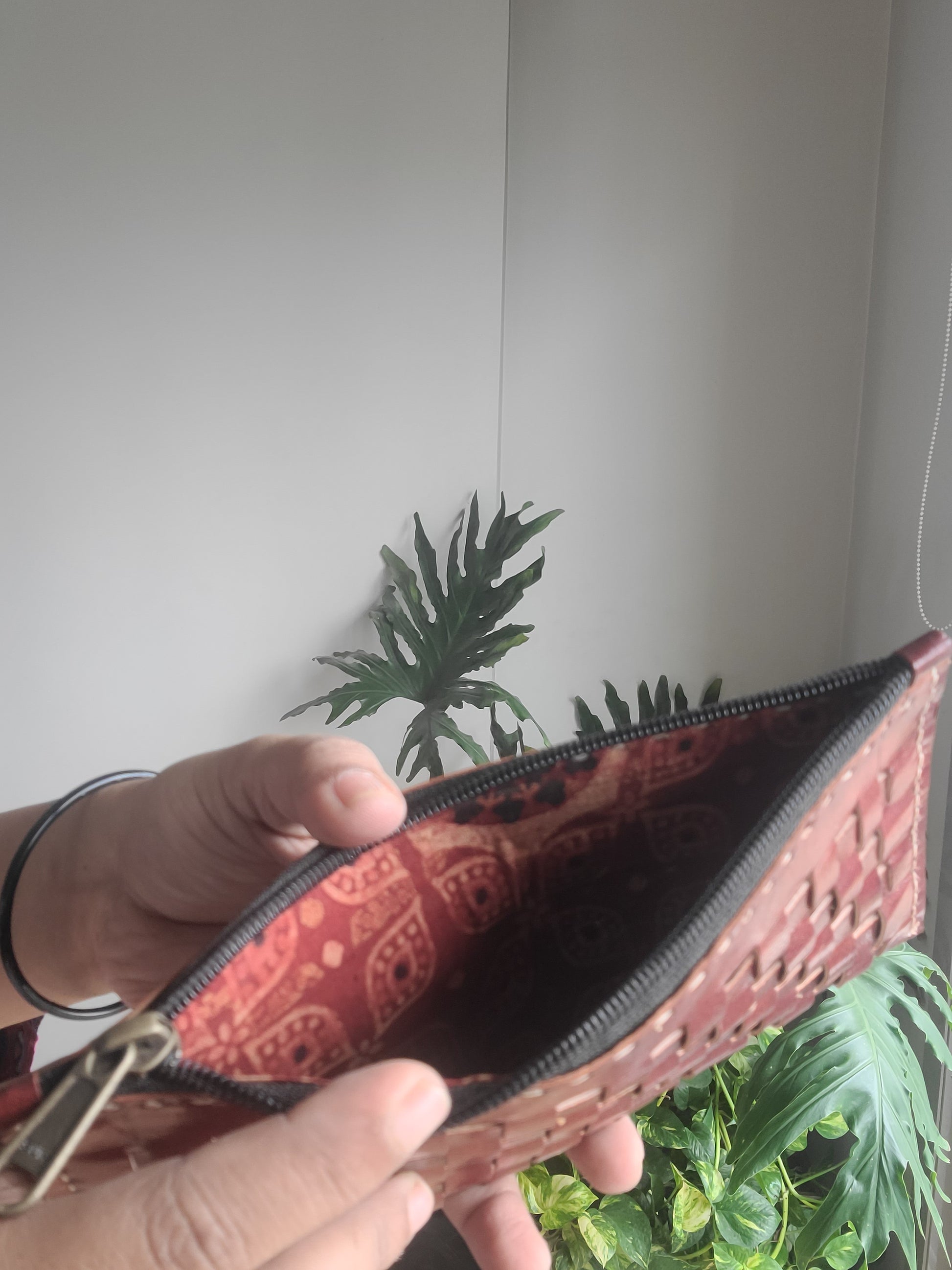 Kutch leather Checks pouch