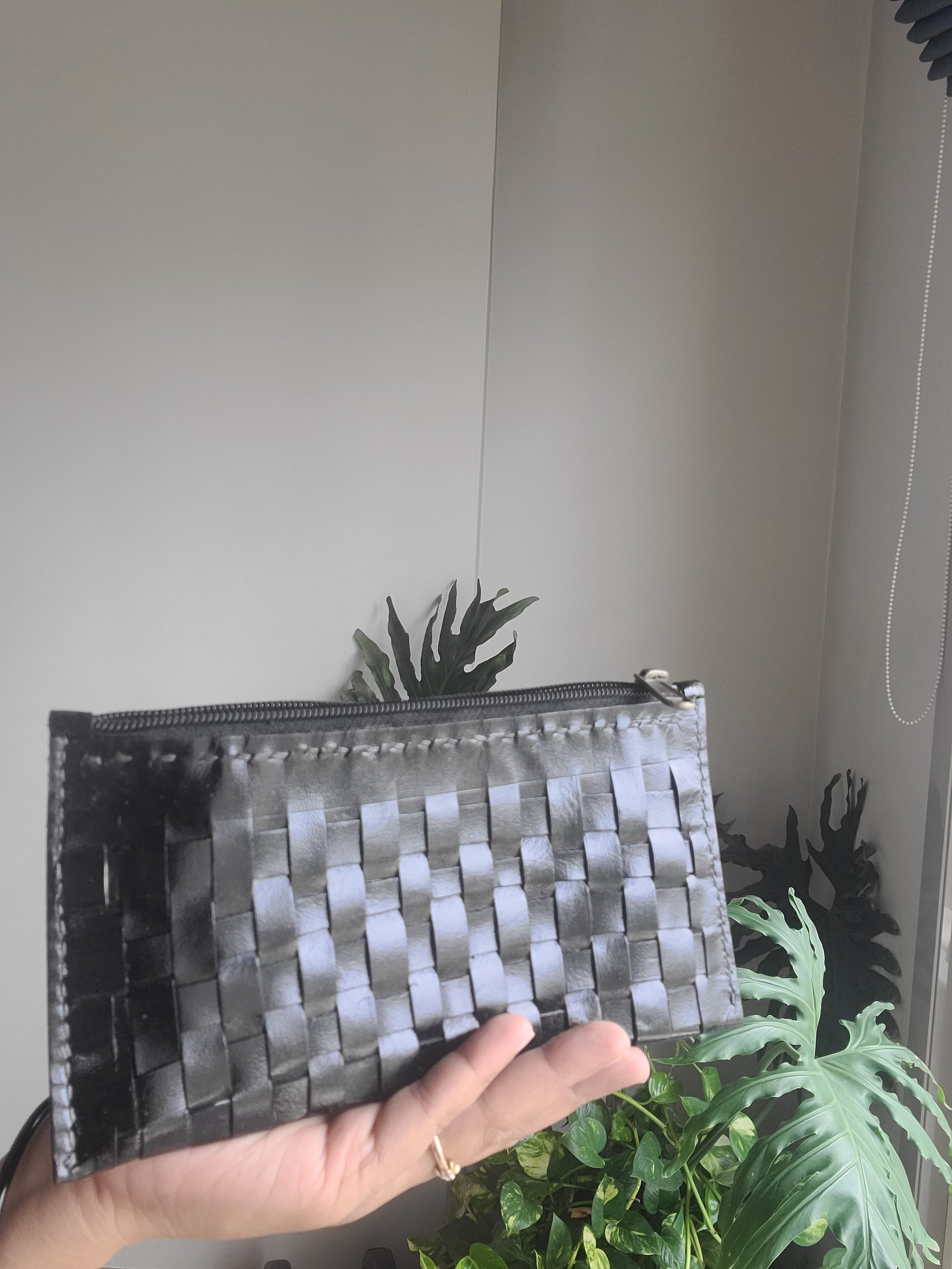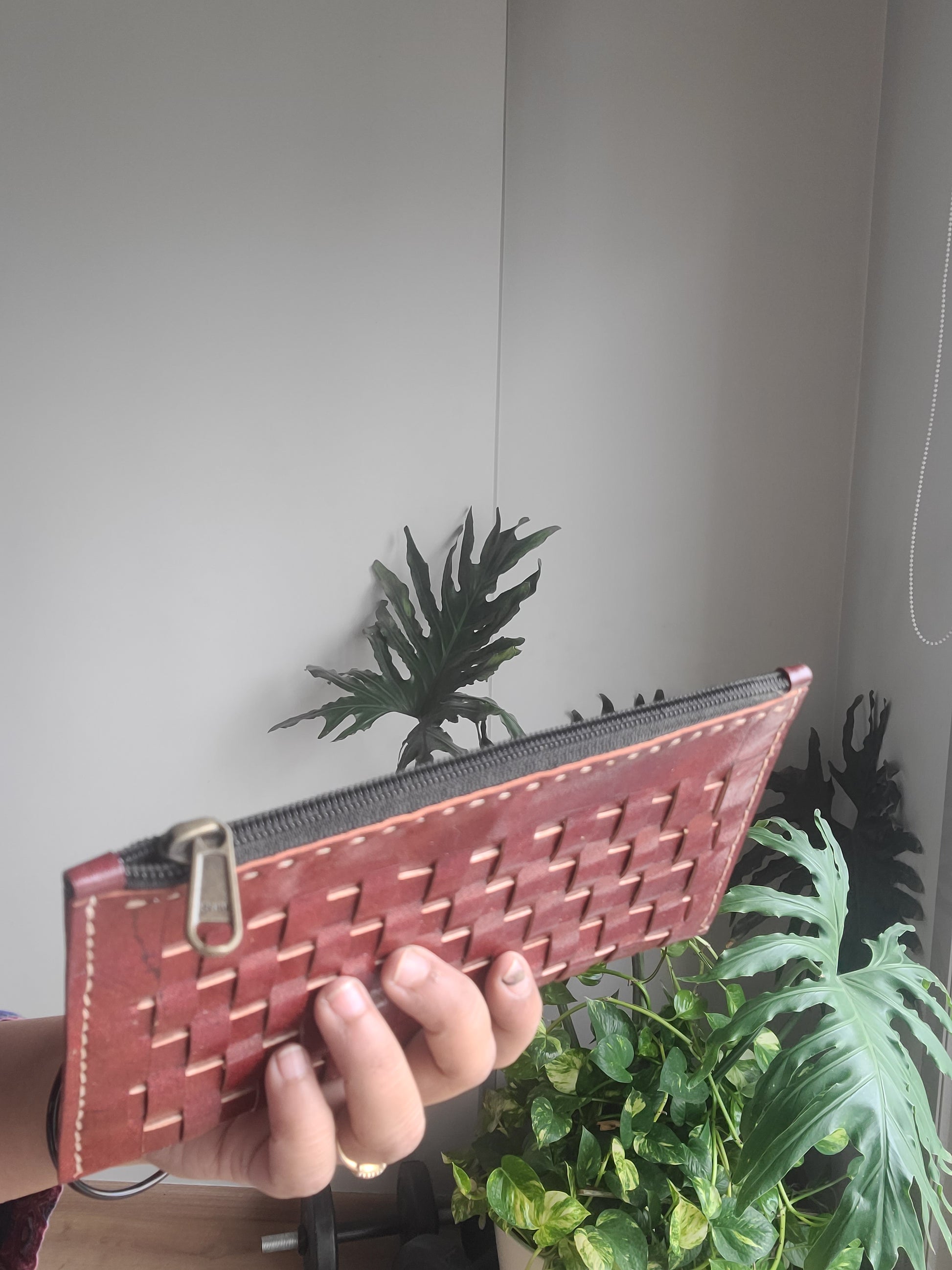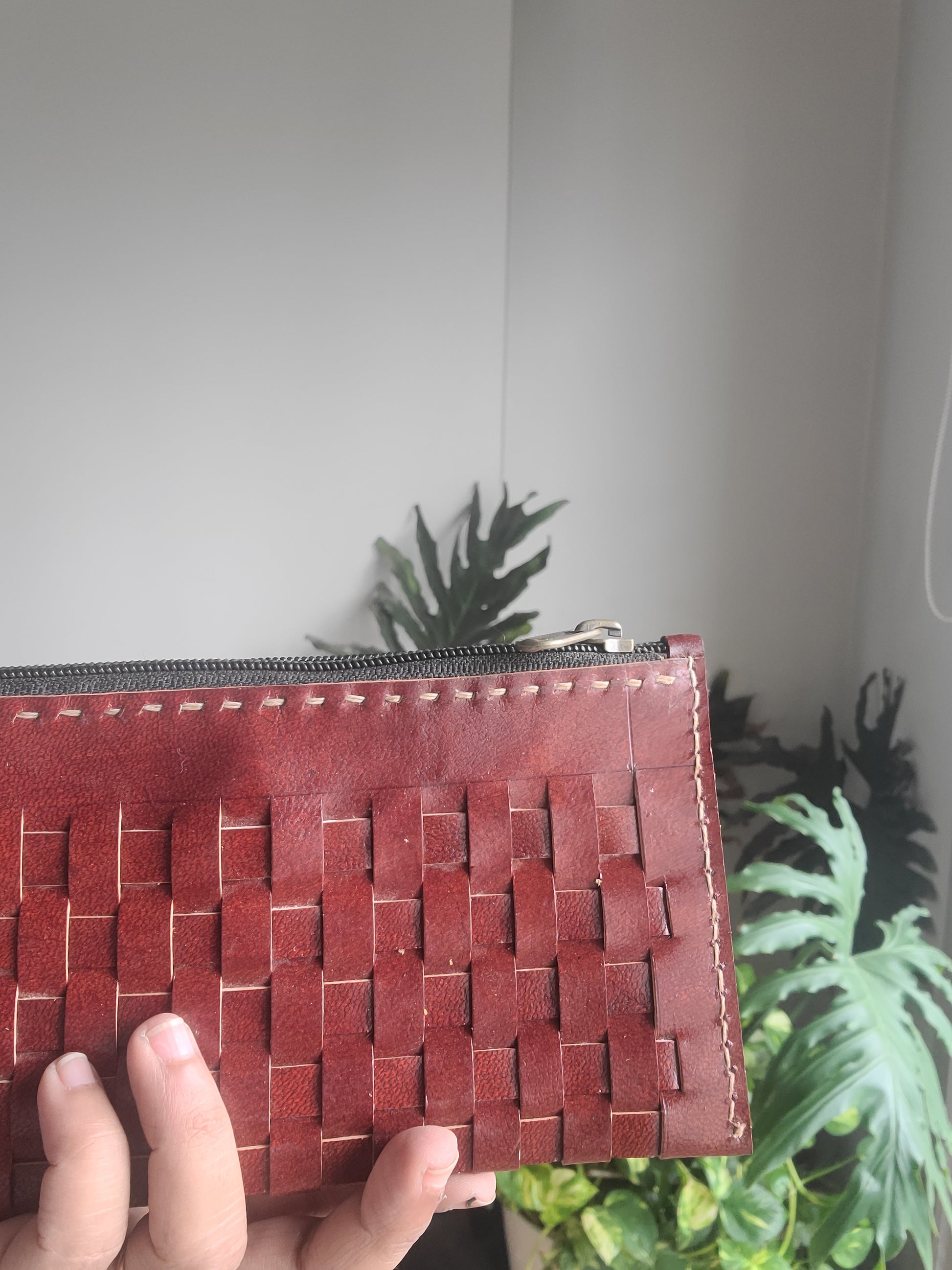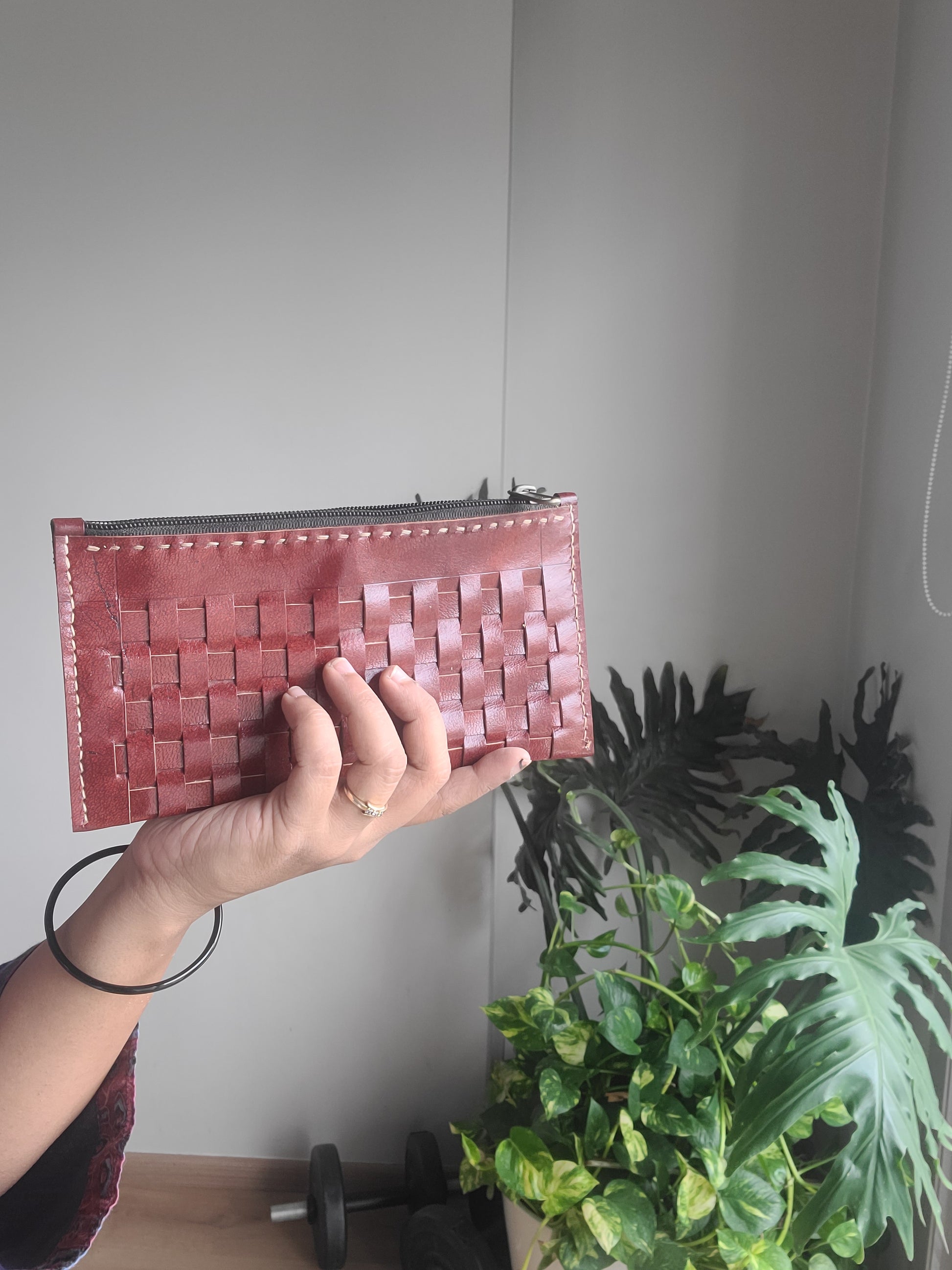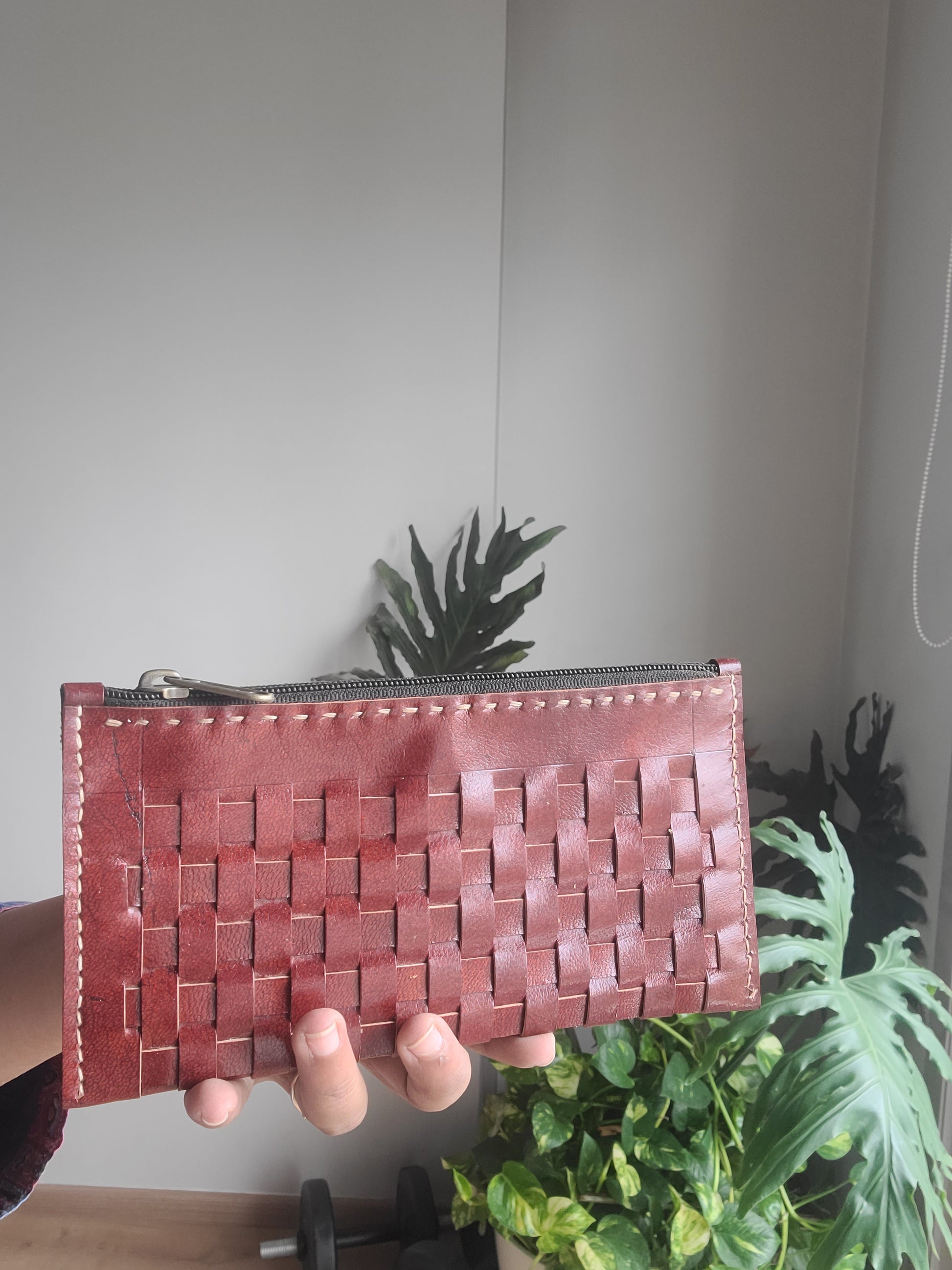 Kutch leather Checks pouch