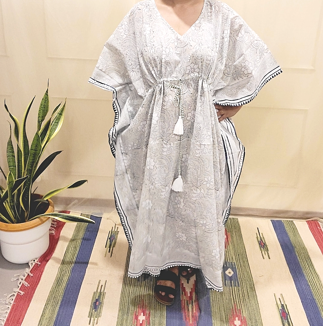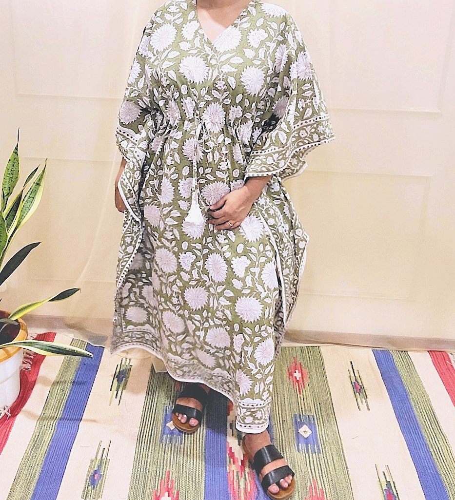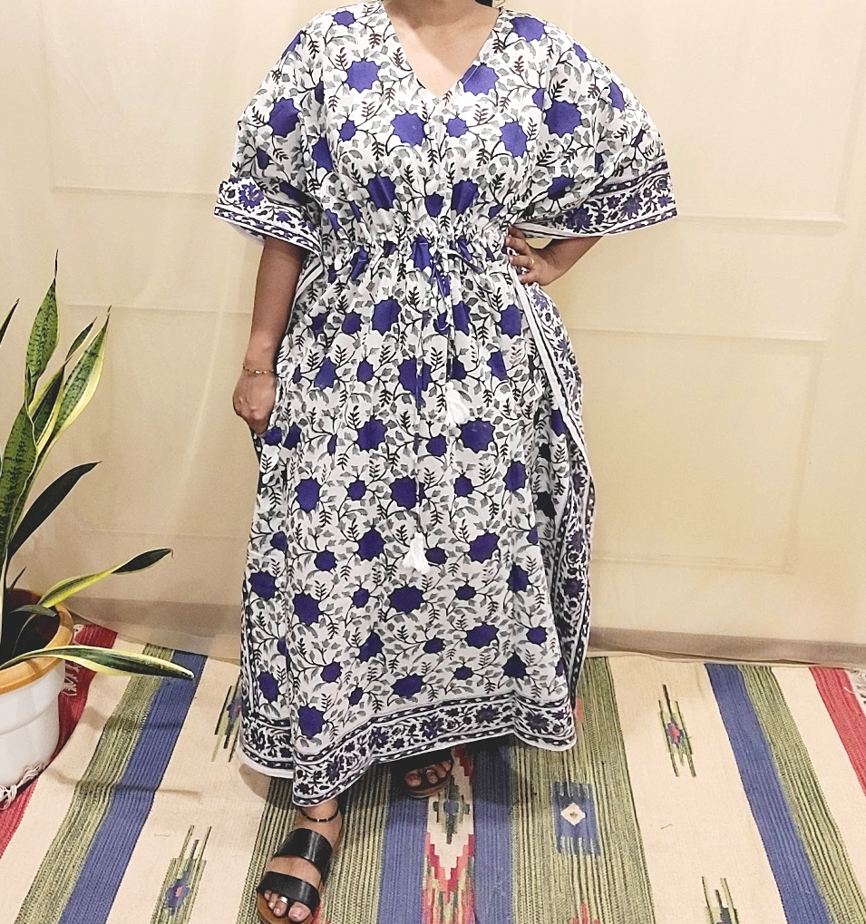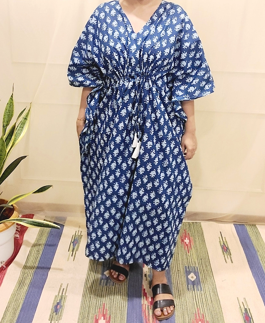 Kaftans night wear in pure cotton fabric with unique Hand block prints