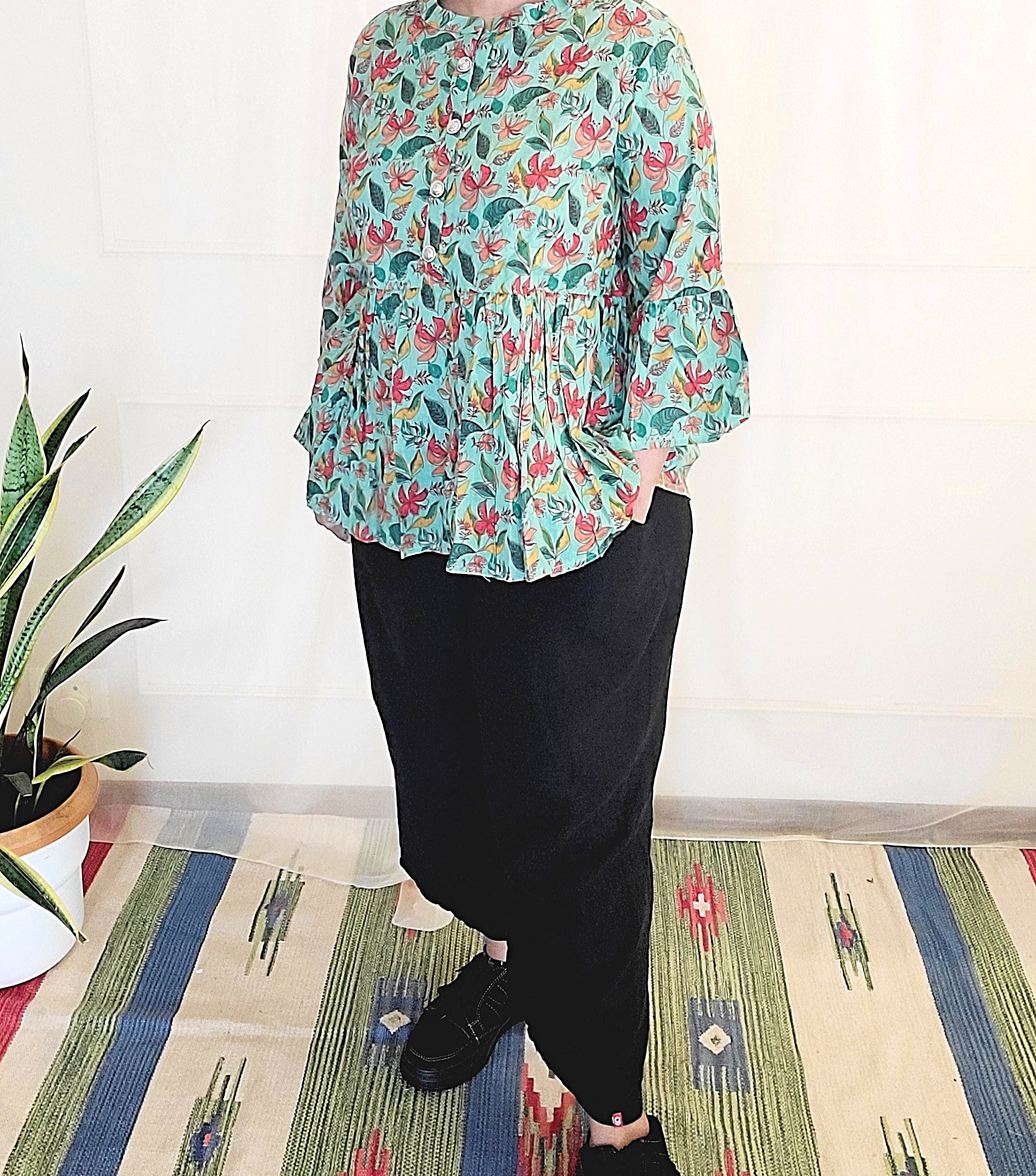 Discover the perfect blend of tradition and modern fashion with our Kalamkari Cotton Casual Tops. Made from premium-quality cotton, these tops ensure maximum comfort and breathability, ideal for any casual outing or relaxed occasion. The intricate Kalamkari print, known for its rich heritage and stunning patterns, adds a unique touch of elegance and cultural charm to your wardrobe.