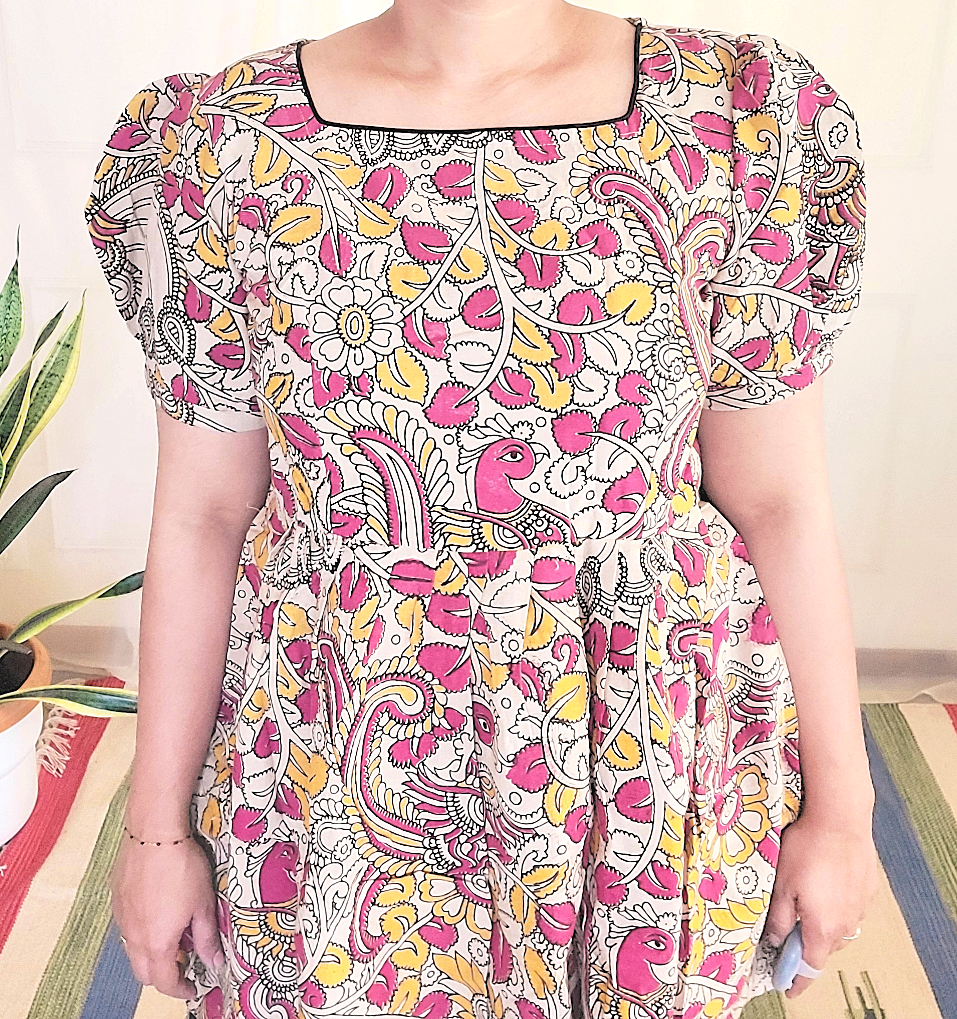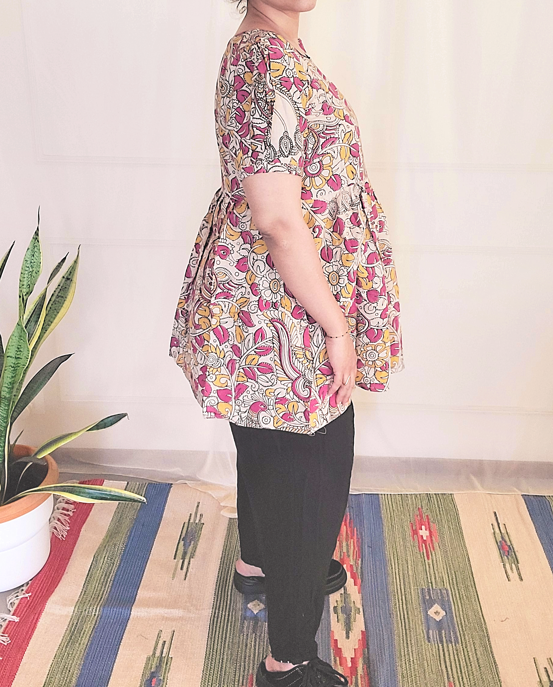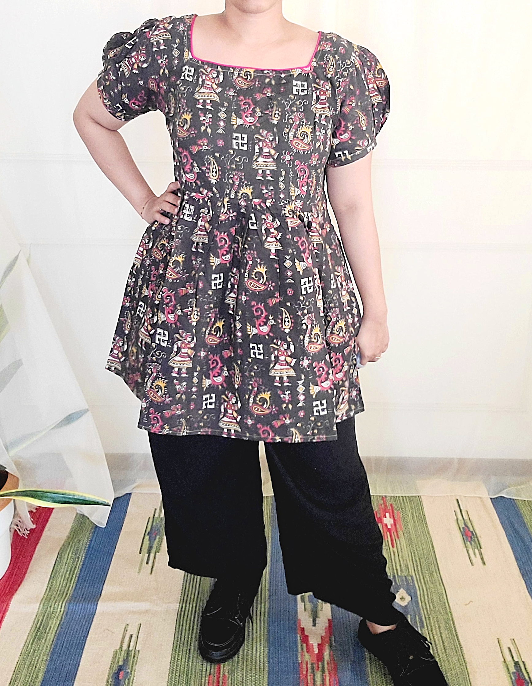 Kalamkari cotton women's Long top with puffed sleeves